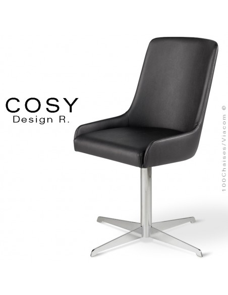 Chaise de bureau confort COSY, assise pivotant, habillage cuir synthétique, piétement colonne centrale peint ou chromé.