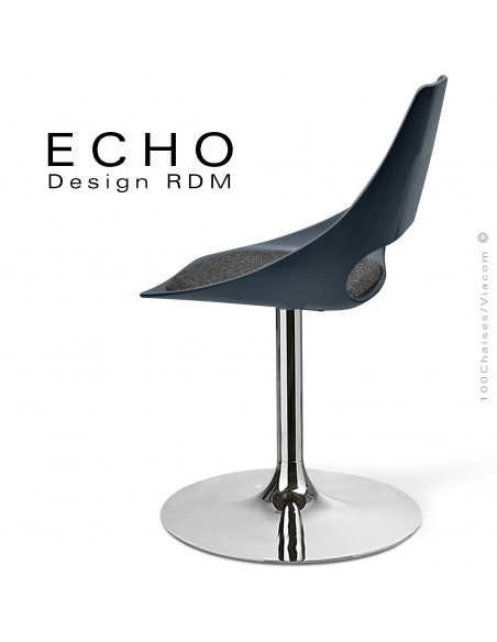 Chaise coque plastique pivotante ECHO piétement colonne centrale type tulipe ou trompette en tube d'acier Ø60 mm, platine de sol conique Ø500 mm. Finition peinture polyester noir ou blanc. Assise coque de couleur blanche ou noire en techno-polymère composite multicouche à densité variable. Convient essentiellement pour l'intérieur. Avec option coussin d'assise amovible garnie de mousse polyuréthane, habillage feutre couleur anthracite ou sable.
