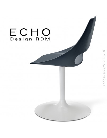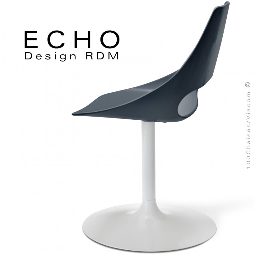 Chaise coque plastique pivotante ECHO piétement colonne centrale type tulipe ou trompette en tube d'acier Ø60 mm, platine de sol conique Ø500 mm. Finition peinture polyester noir ou blanc. Assise coque de couleur blanche ou noire en techno-polymère composite multicouche à densité variable. Convient essentiellement pour l'intérieur. Avec option coussin d'assise amovible garnie de mousse polyuréthane, habillage feutre couleur anthracite ou sable.