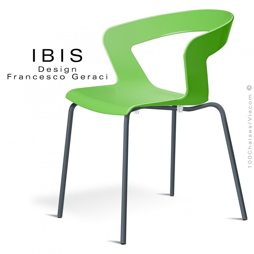 Chaise design IBIS piétement peint anthracite, assise coque plastique couleur verte.
