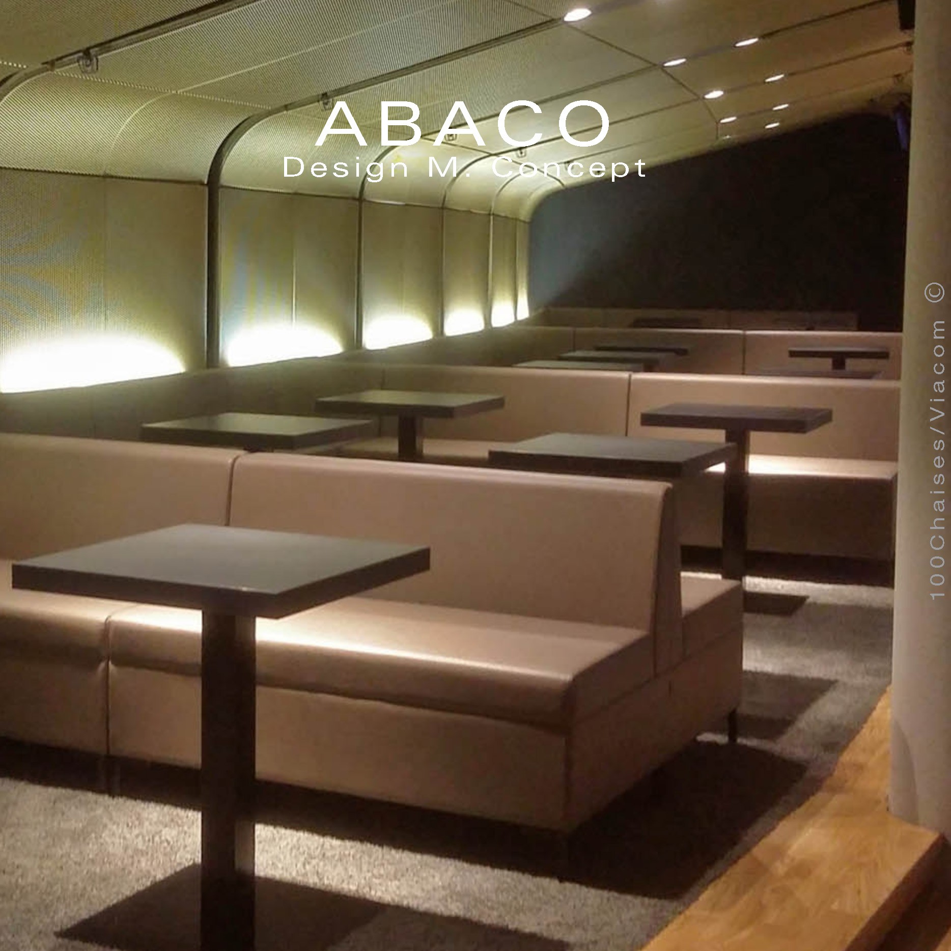 Liberté de composition… ABACO est le système de banquette modulable : la collection comporte, poufs, banquettes droites et d'angle, courbes concave et convexe ainsi que les modules de revêtements muraux, sont les éléments d'un produit au service de la conception et de la créativité. Les modules linéaires d’angle et les panneaux muraux rembourrés sont un système flexible et modulable qui, grâce aux différentes tailles disponibles, vous permettent de configurer et de décorer tout espace. La possibilité de combiner 3 couleurs de revêtement pour la base, l’assise et le dossier ainsi que celle des panneaux muraux permet de jouer sur des effets chromatiques importants qui vous permettent d'harmoniser avec l'environnement et le projet.