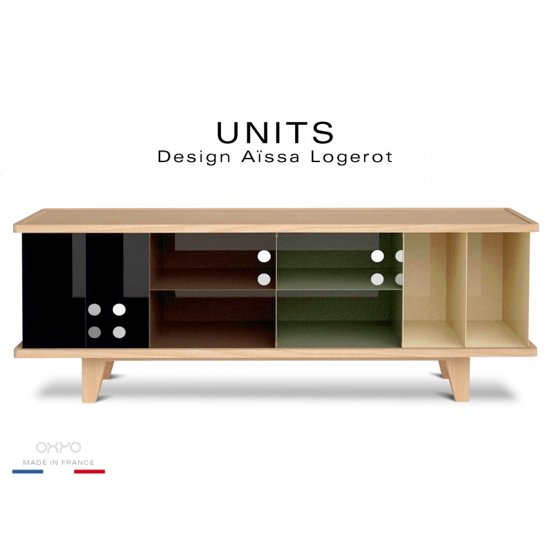 Buffet, commode ou bahut, UNITS, structure et plateau en bois de Hêtre, caisson modulable acier peint.