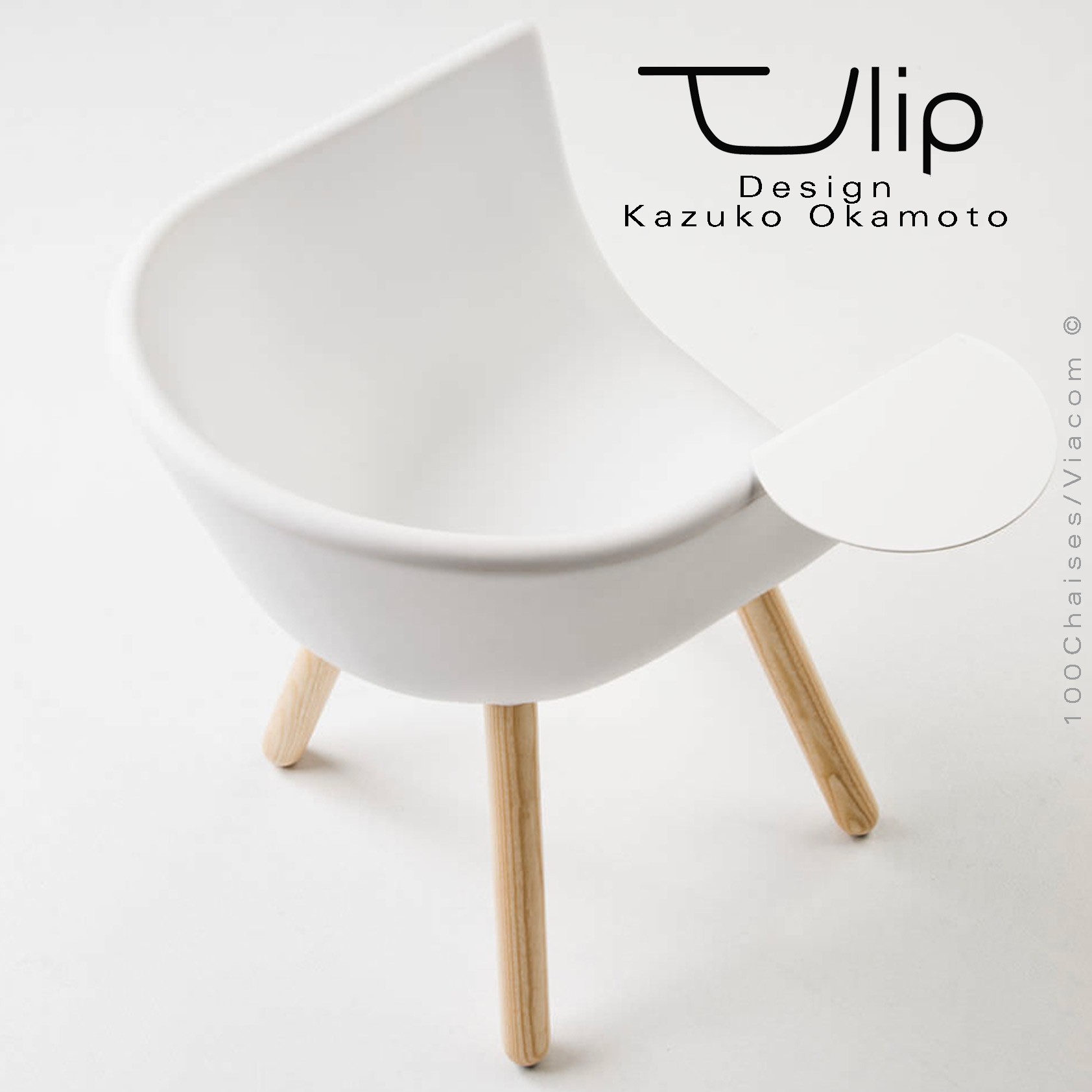 Normes européennesFauteuil chic et tendance design TULIPE SMALL, assise coque plastique souple effet peau de pêche au touché "peached", donne des sensations tactiles et des émotions (souple et confortable). Assise ignifugé en polyuréthane, couleurs noir, gris, blanc, bleu, jaune, rouge. Piétement 4 pieds rond en bois de Frêne massif, vernis incolore naturel. Option : tablette ou écritoire acier peint - dimensions 16x24 cm - couleurs disponibles noire ou blanche.