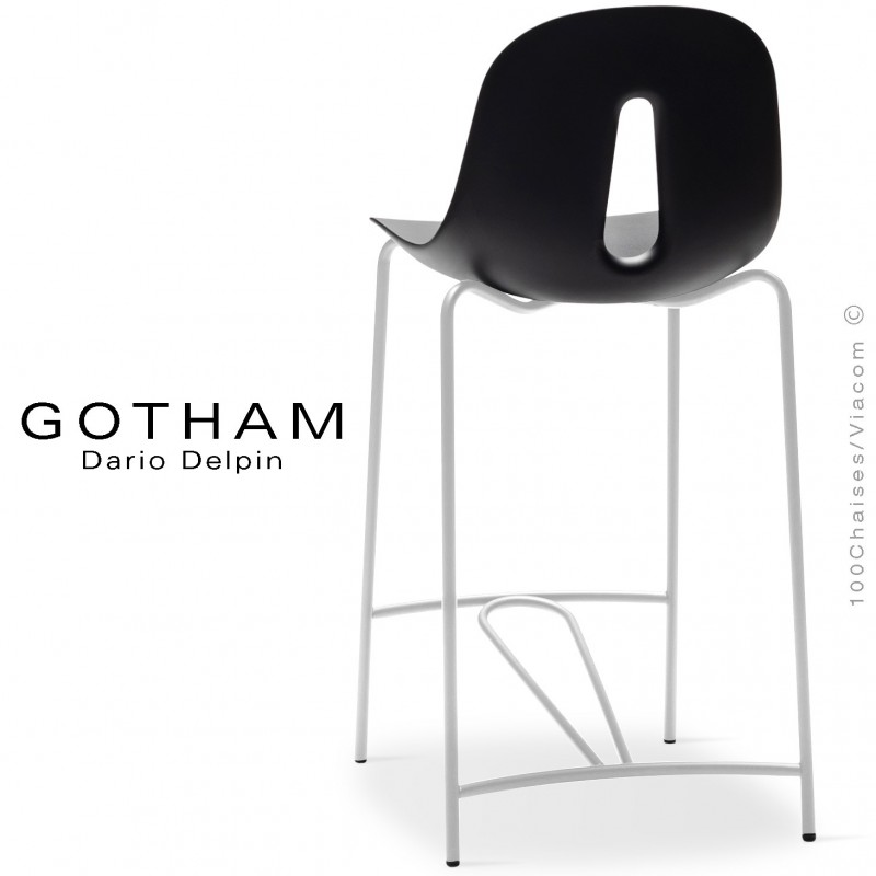 Normes européennesTabouret de cuisine design GOTHAM-SG65, pour les hôtels, bars, cafés, restaurants ou milieu domestique la maison, cuisine, bureau, chambre. Assise coque plastique en polyuréthane rigide, monobloc à l'épreuve du feu, couleur teinté dans la masse (13 couleurs possibles). Structure et piétement 4 pieds en tube d'acier Ø15 mm., avec repose pieds et bouchons plastiques de protections des sols. Vos demandes à : commandes@100chaises.fr