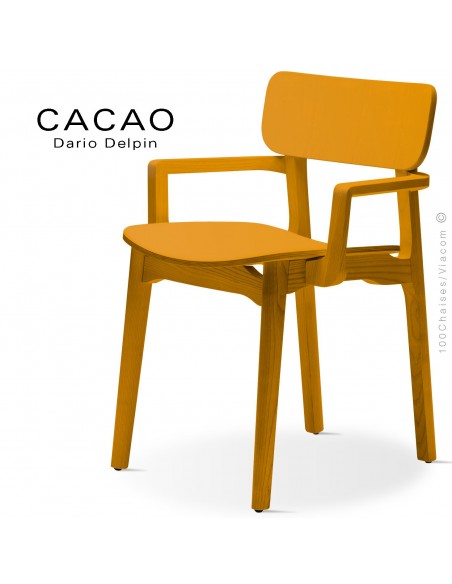 Fauteuil bois design CACAO, structure et piétement 4 pieds en bois de Frêne avec accoudoirs, vernis naturel ou teinté.