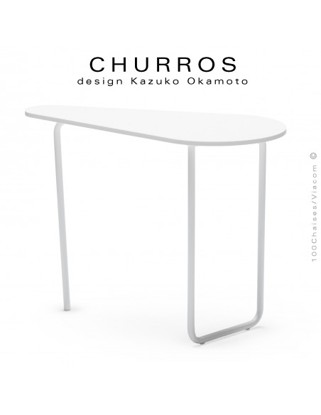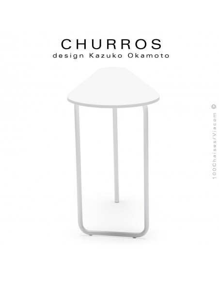 Normes européennesTablette d'appoint pour banquette modulable CHURROS, piétement en tube d'acier, finition peinture polyester blanche RAL-9003. Plateau arrondie de forme fantaisie ou goutte d'eau, plateau en Corian de couleur blanc. Résistant à l'abrasion et aux intempéries. Petite tablette pour accompagner la collection Churros, très fonctionnelle créera des points d'arrêts originaux sur la ligne continue du mobilier.