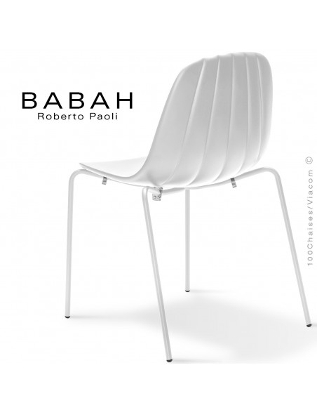 Chaise BABAH,structure 4 pieds peint blanc, assise plastique white.