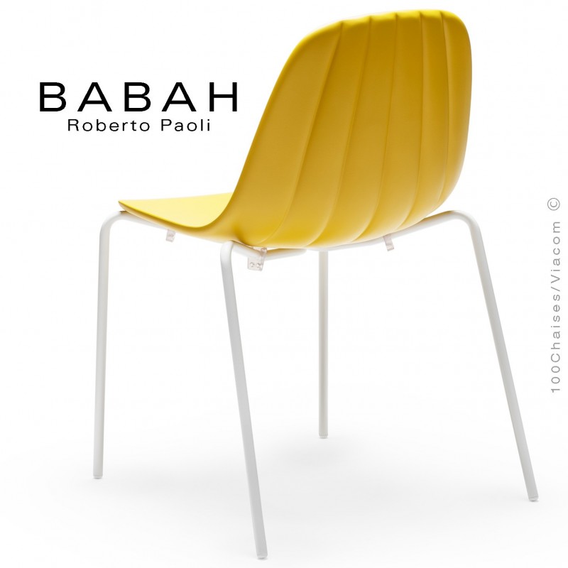 Chaise BABAH,structure 4 pieds peint blanc, assise plastique yellow.