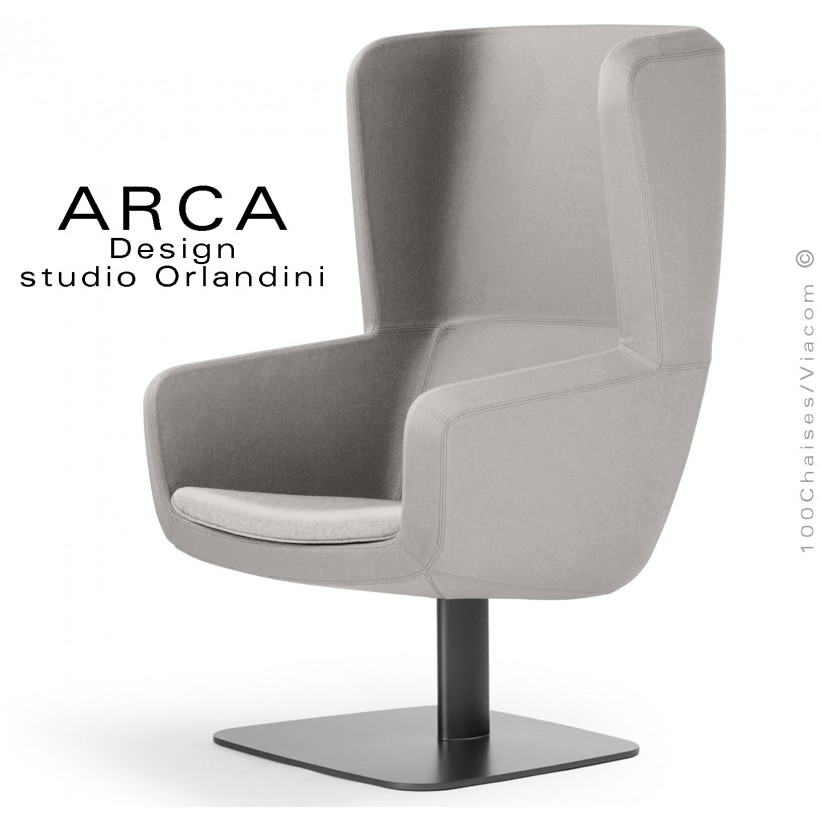 Fauteuil lounge ARCA, pour salon d'attente standing, habillage tissu 100% polyester, piétement colonne centrale acier peint.