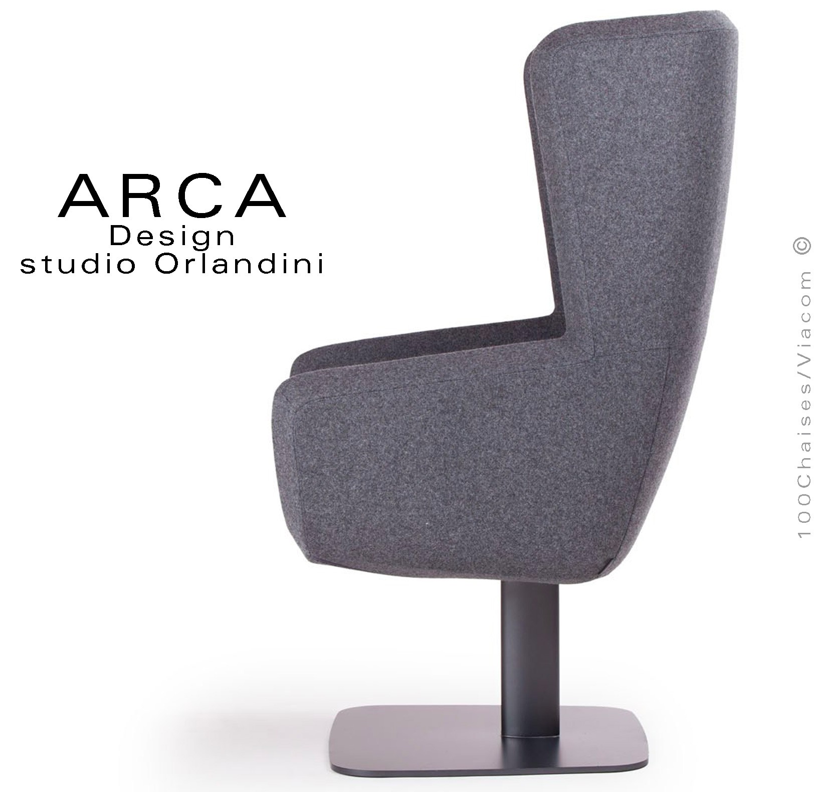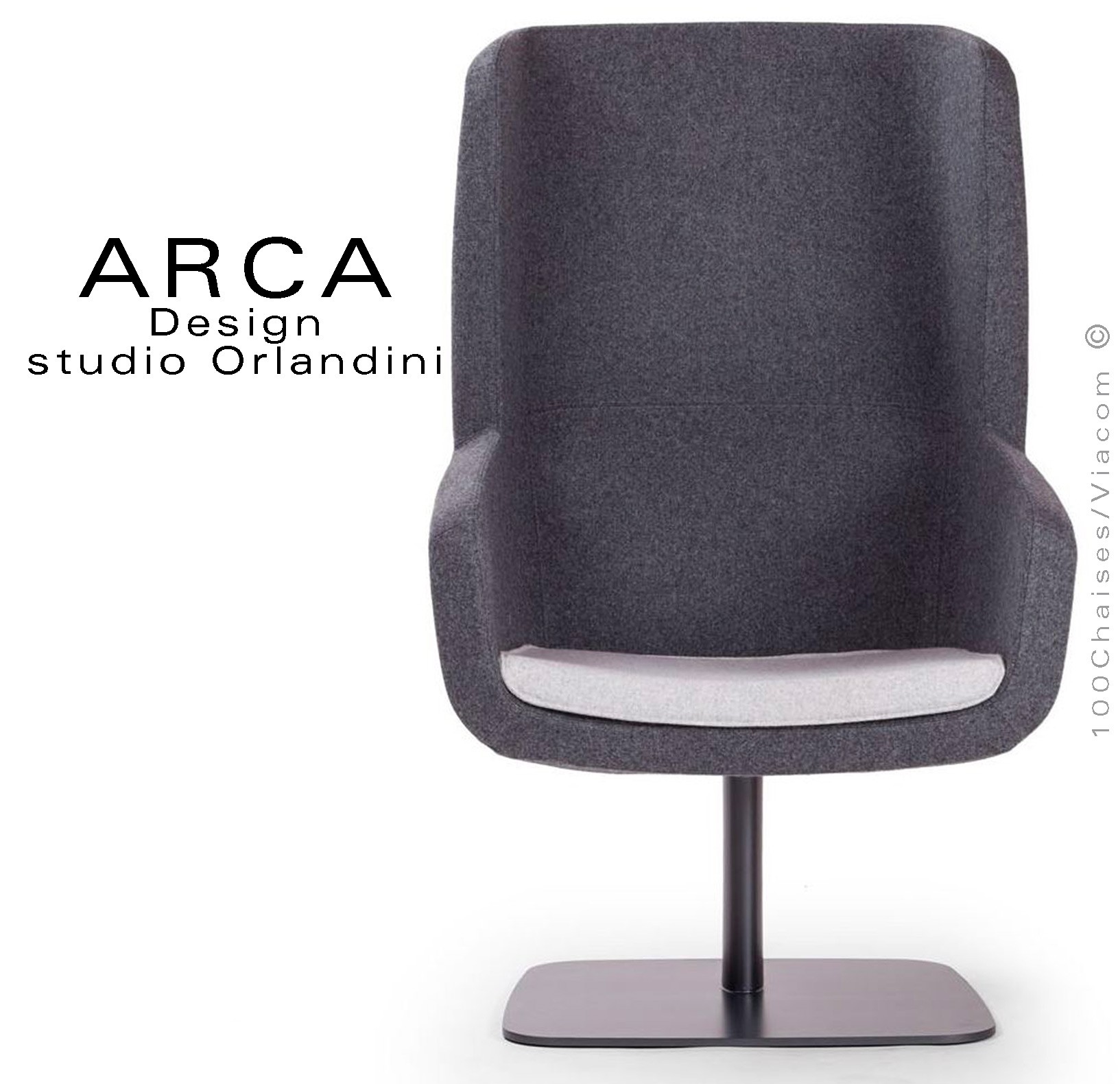 Fauteuil lounge ARCA, pour salon d'attente standing, habillage tissu 100% polyester, piétement colonne centrale acier peint.