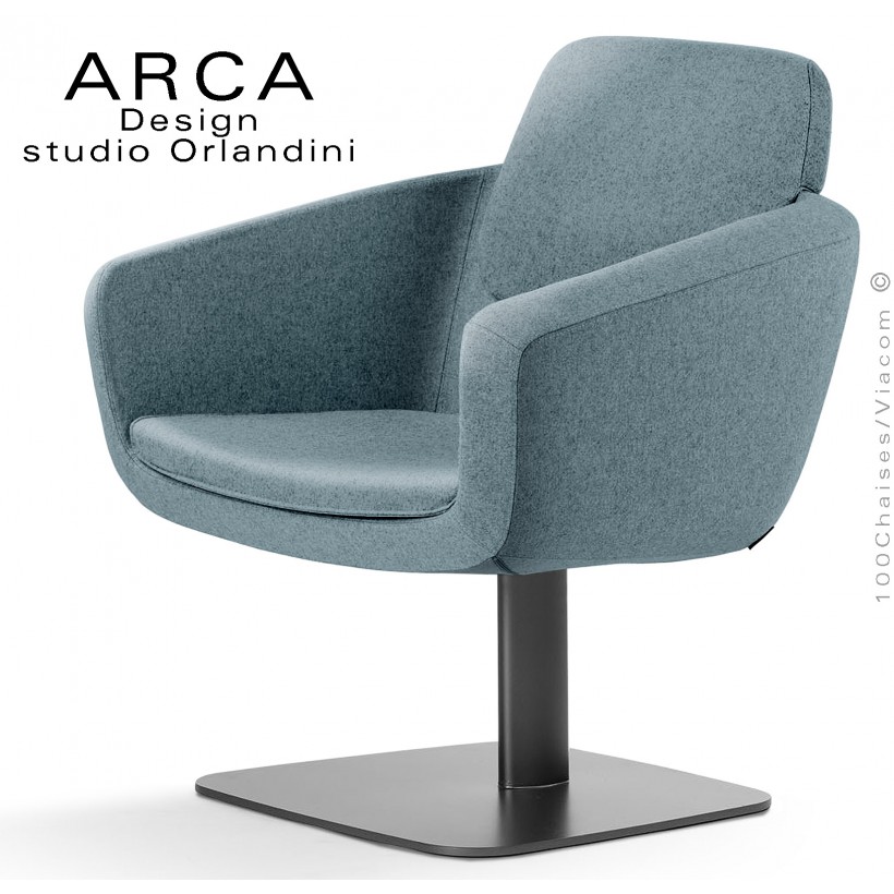 Fauteuil pour salon d'attente lounge ARCA, piétement colonne centrale acier pient, assise garnie habillage tissu 100% polyester.