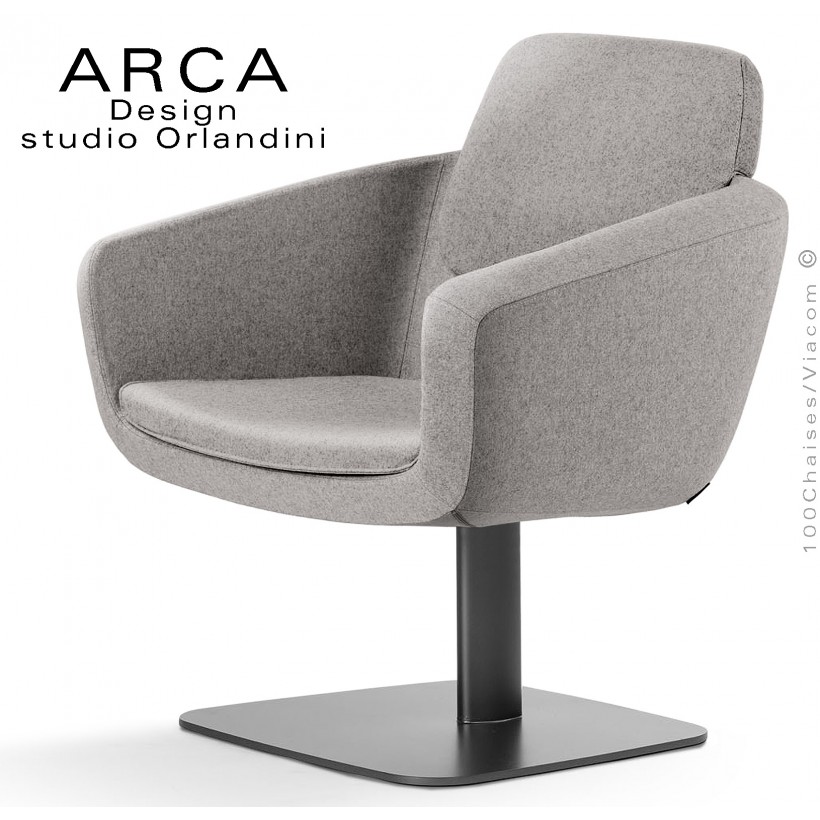 Fauteuil pour salon d'attente lounge ARCA, piétement colonne centrale peint noir, assise tissu couleur gris Tourterelle.