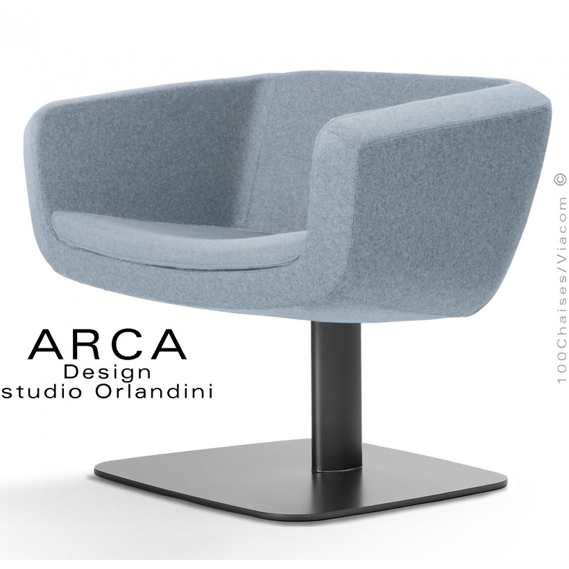 Fauteuil lounge pour salle d'attente ARCA, piétement colonne centrale ovoïde noir, assise tissu couleur bleu clair.