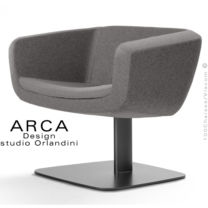 Fauteuil lounge pour salle d'attente ARCA, structure interne acier, assise et dossier garnis de mousse moulée et injectée à froid. Piétement colonne centrale tube d'acier ovaïde, finition peinture noir (autre suivant gamme fabricant voir palette). Avec tampons plastique de protection des sols. Assise, dossier bas et accoudoirs coque, garnis de mousse habillage tissu tissé, gamme ERA, 100% polyester du fabricant Camira, couleurs aux choix. Option tablette écritoire sur demande.