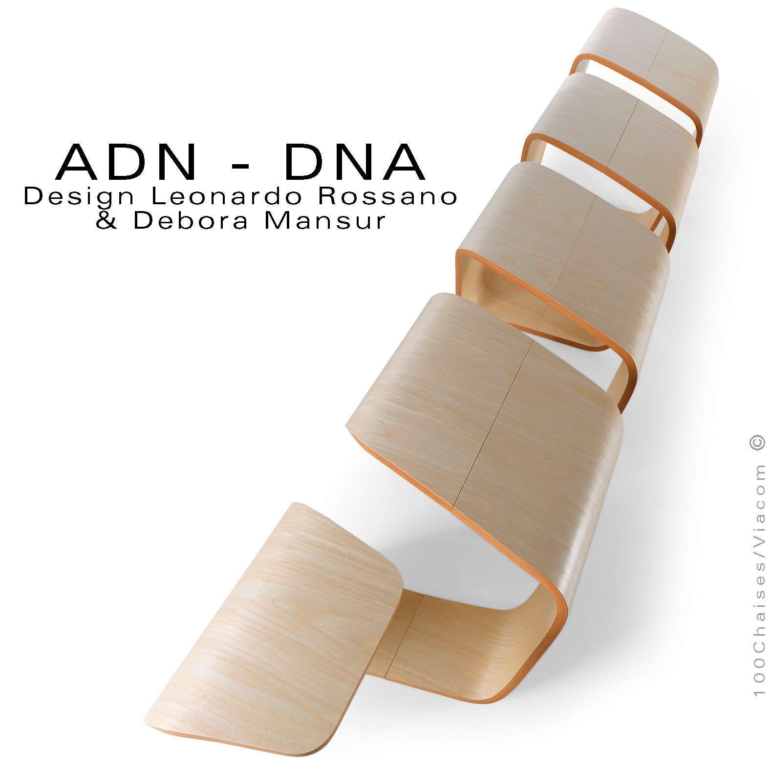 ADN-DNA ou bio-génétique humain, le résultat est un banc d'attente captivant caractérisé par la forme d'une séquence génétique. Ce banc d'attente consiste en un assemblage unique crée à partir d'une seul section de contre plaqué incurvé, qui se reflète dans la conception pour créer des configurations de sièges multiples. Les designers ont trouvés l'inspiration dans la forme génétique d'une double hélice. Ce banc d'attente donnera une touche dynamique à votre accueil sans oublier le confort de vos visiteurs.