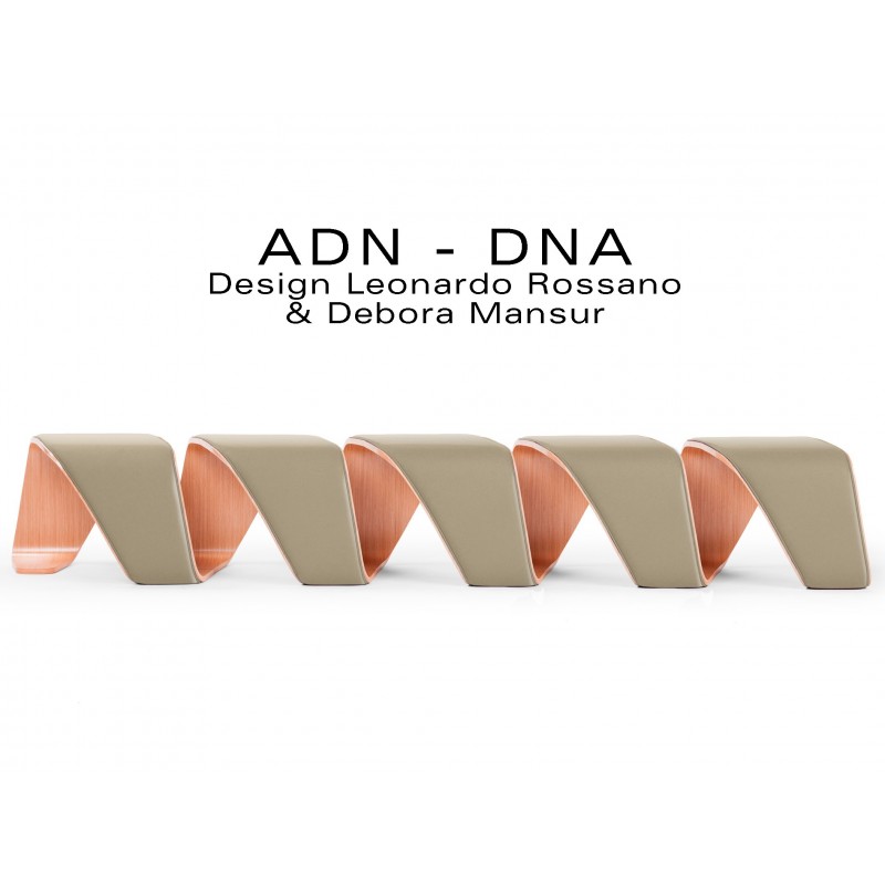 Aménagez un espace d'accueil aussi convivial qu’original grâce au banc modulaire DNA. Inspiré des formes dynamiques de la modélisation moléculaire de deux brins d’ADN, ce banc design se compose d'un seul élément de contreplaqué de bois courbé ou de tôle d'acier. En résulte un meuble atypique avec une forme d’hélice offrant une assise confortable. Robuste, disponibles dans de nombreuses déclinaisons, ce banc trouvera sa place les environnements d'accueil tels que les halls d'entrée ou les salles d’attente en intérieur mais aussi en extérieur pour le modèle acier. La banquette droite peut être réalisée avec un minimum de 3 modules de sièges, jusqu'à 7 places linéaire. Le banc DNA est également disponible dans une version ou l'assise reçoit de la mousse et l'habillage d'un tissu de choix. N’hésitez pas à nous contacter afin de nous faire part de vos projets d’aménagement. Nous pourrons vous conseiller sur les nombreuses configurations offertes par le banc DNA.