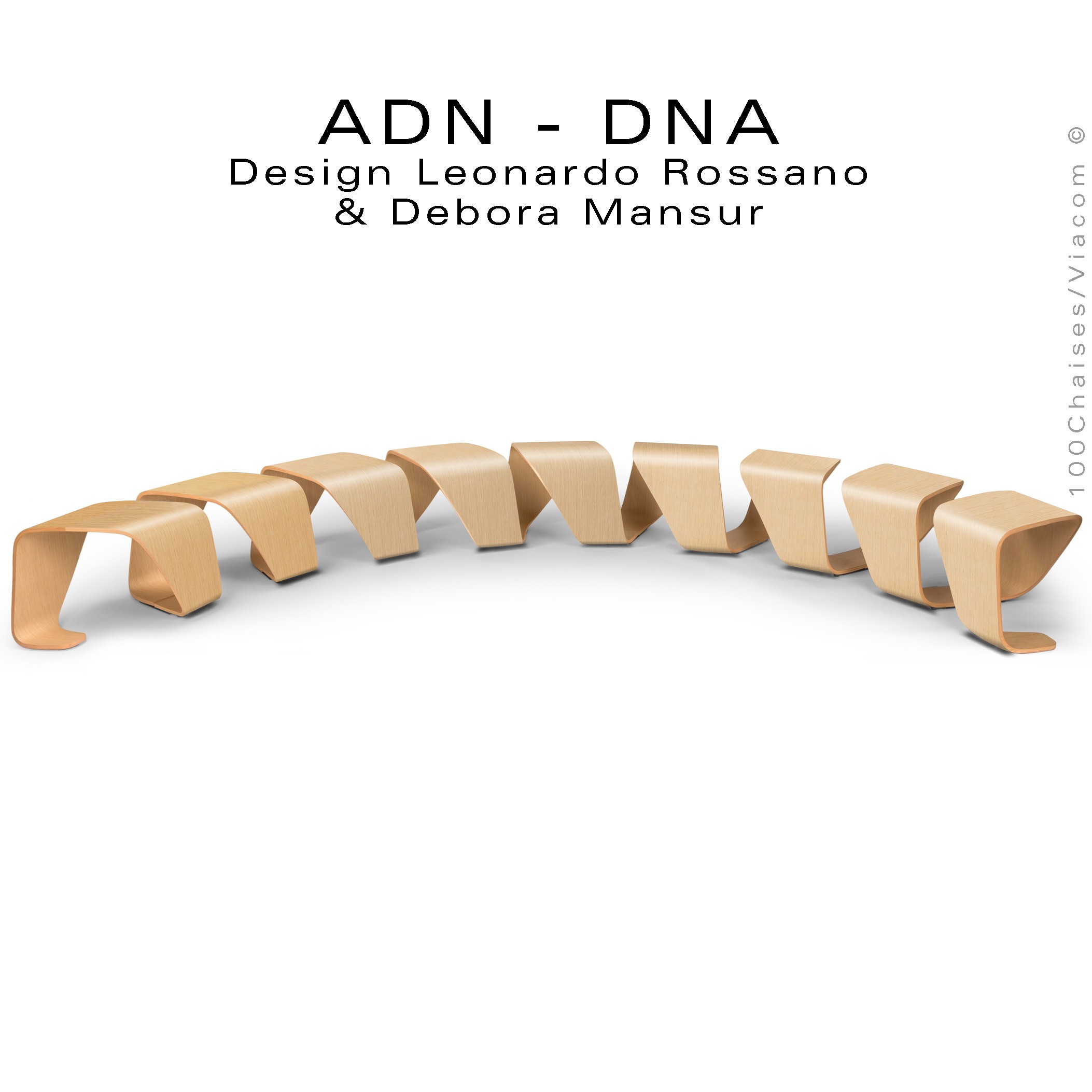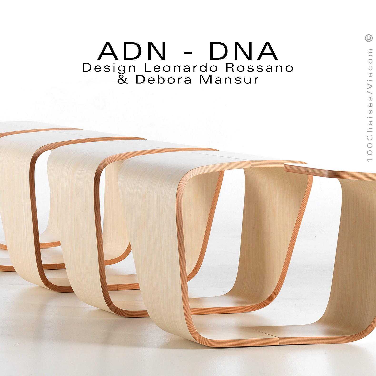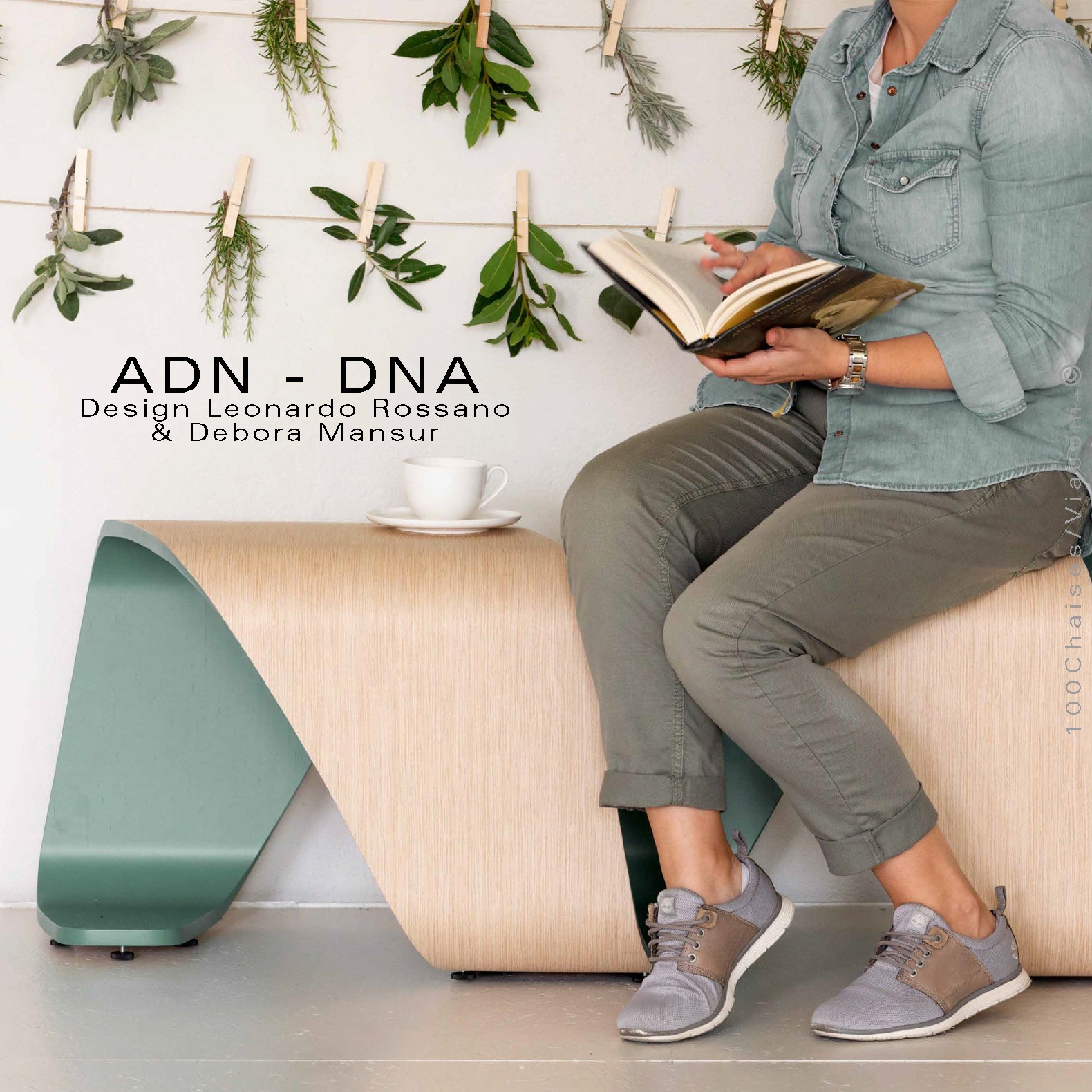 Aménagez un espace d'accueil aussi convivial qu’original grâce au banc modulaire DNA. Inspiré des formes dynamiques de la modélisation moléculaire de deux brins d’ADN, ce banc design se compose d'un seul élément de contreplaqué de bois courbé ou de tôle d'acier. En résulte un meuble atypique avec une forme d’hélice offrant une assise confortable. Robuste, disponibles dans de nombreuses déclinaisons, ce banc trouvera sa place les environnements d'accueil tels que les halls d'entrée ou les salles d’attente en intérieur mais aussi en extérieur pour le modèle acier. La banquette droite peut être réalisée avec un minimum de 3 modules de sièges, jusqu'à 7 places linéaire. Le banc DNA est également disponible dans une version ou l'assise reçoit de la mousse et l'habillage d'un tissu de choix. N’hésitez pas à nous contacter afin de nous faire part de vos projets d’aménagement. Nous pourrons vous conseiller sur les nombreuses configurations offertes par le banc DNA.