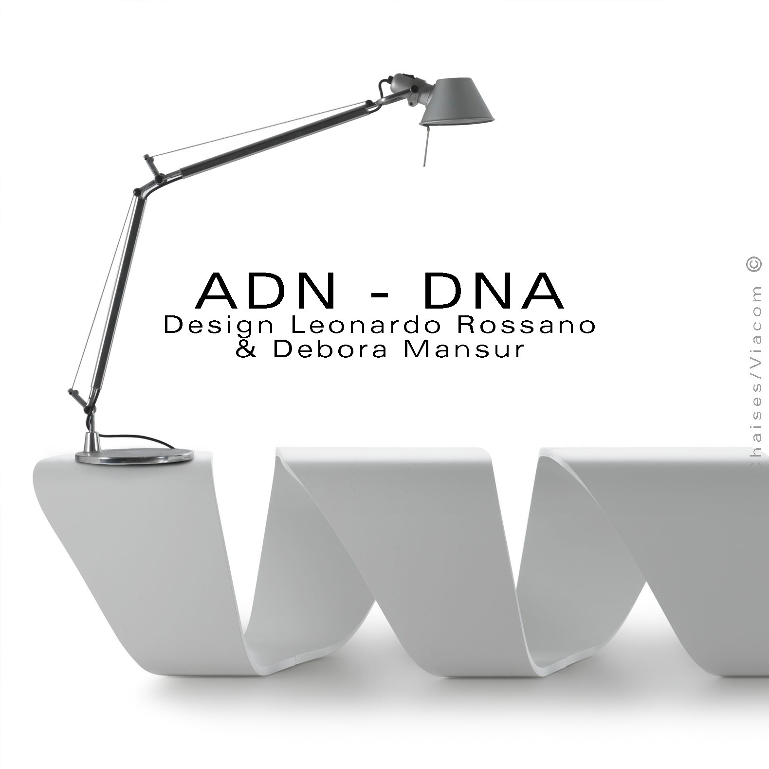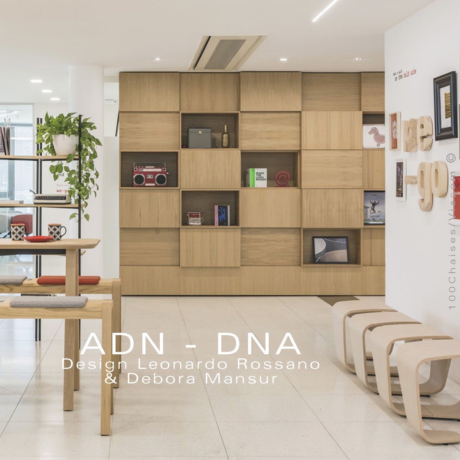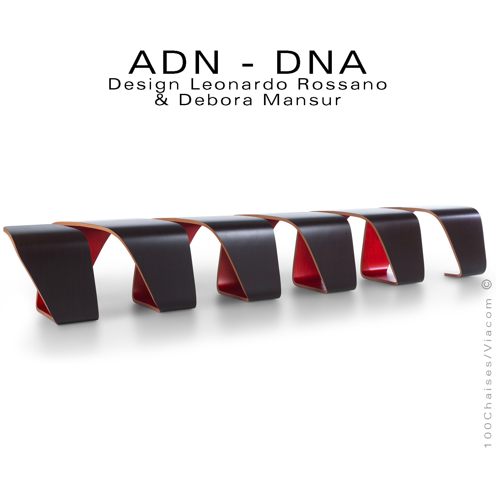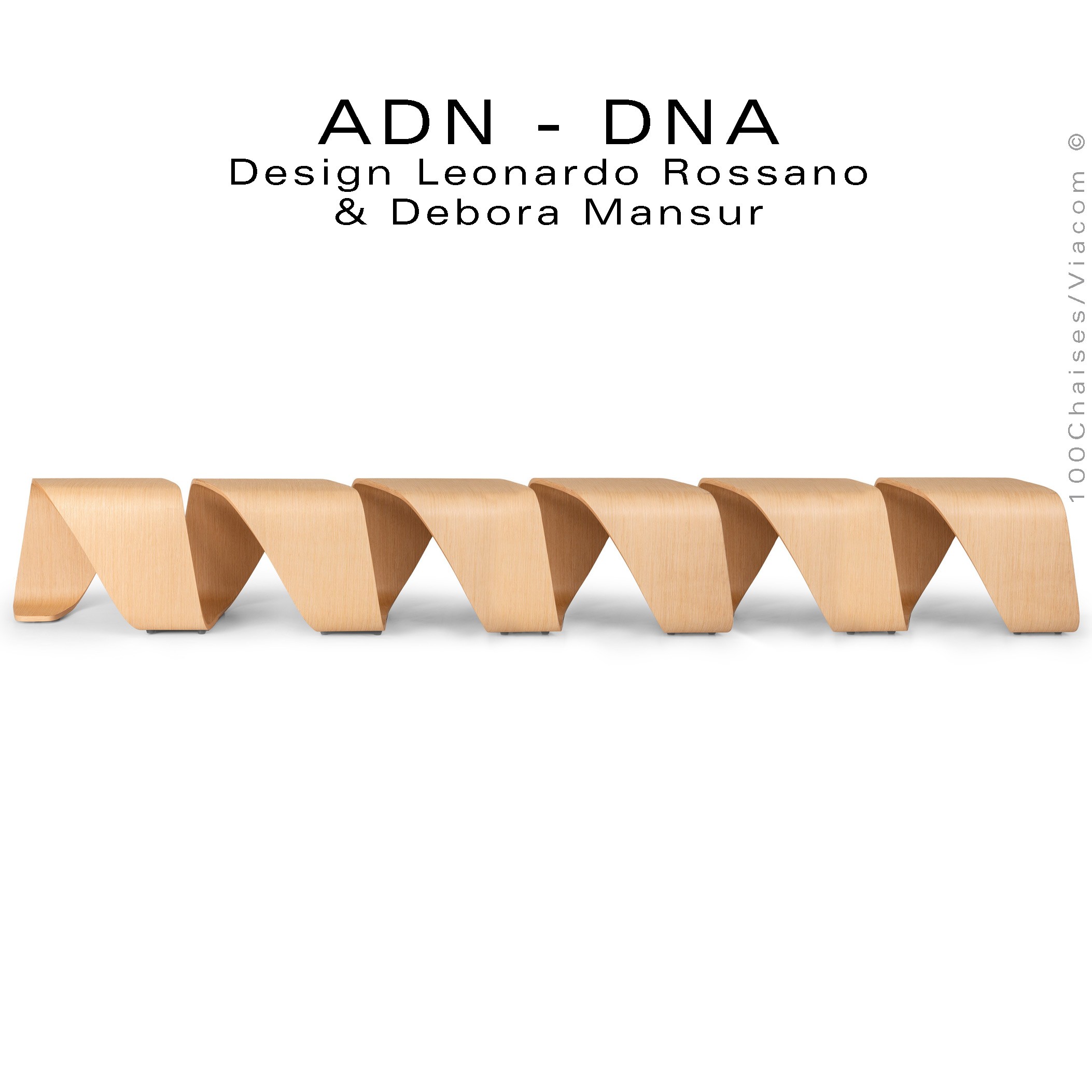 Aménagez un espace d'accueil aussi convivial qu’original grâce au banc modulaire DNA. Inspiré des formes dynamiques de la modélisation moléculaire de deux brins d’ADN, ce banc design se compose d'un seul élément de contreplaqué de bois courbé ou de tôle d'acier. En résulte un meuble atypique avec une forme d’hélice offrant une assise confortable. Robuste, disponibles dans de nombreuses déclinaisons, ce banc trouvera sa place les environnements d'accueil tels que les halls d'entrée ou les salles d’attente en intérieur mais aussi en extérieur pour le modèle acier. La banquette droite peut être réalisée avec un minimum de 3 modules de sièges, jusqu'à 7 places linéaire. Le banc DNA est également disponible dans une version ou l'assise reçoit de la mousse et l'habillage d'un tissu de choix. N’hésitez pas à nous contacter afin de nous faire part de vos projets d’aménagement. Nous pourrons vous conseiller sur les nombreuses configurations offertes par le banc DNA.
