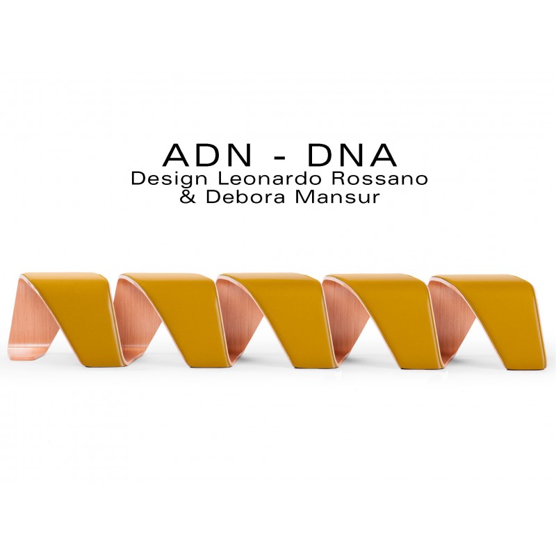 Aménagez un espace d'accueil aussi convivial qu’original grâce au banc modulaire DNA. Inspiré des formes dynamiques de la modélisation moléculaire de deux brins d’ADN, ce banc design se compose d'un seul élément de contreplaqué de bois courbé ou de tôle d'acier. En résulte un meuble atypique avec une forme d’hélice offrant une assise confortable. Robuste, disponibles dans de nombreuses déclinaisons, ce banc trouvera sa place les environnements d'accueil tels que les halls d'entrée ou les salles d’attente en intérieur mais aussi en extérieur pour le modèle acier. La banquette droite peut être réalisée avec un minimum de 3 modules de sièges, jusqu'à 7 places linéaire. Le banc DNA est également disponible dans une version ou l'assise reçoit de la mousse et l'habillage d'un tissu de choix. N’hésitez pas à nous contacter afin de nous faire part de vos projets d’aménagement. Nous pourrons vous conseiller sur les nombreuses configurations offertes par le banc DNA.