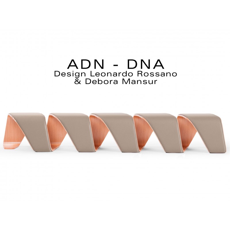 Aménagez un espace d'accueil aussi convivial qu’original grâce au banc modulaire DNA. Inspiré des formes dynamiques de la modélisation moléculaire de deux brins d’ADN, ce banc design se compose d'un seul élément de contreplaqué de bois courbé ou de tôle d'acier. En résulte un meuble atypique avec une forme d’hélice offrant une assise confortable. Robuste, disponibles dans de nombreuses déclinaisons, ce banc trouvera sa place les environnements d'accueil tels que les halls d'entrée ou les salles d’attente en intérieur mais aussi en extérieur pour le modèle acier. La banquette droite peut être réalisée avec un minimum de 3 modules de sièges, jusqu'à 7 places linéaire. Le banc DNA est également disponible dans une version ou l'assise reçoit de la mousse et l'habillage d'un tissu de choix. N’hésitez pas à nous contacter afin de nous faire part de vos projets d’aménagement. Nous pourrons vous conseiller sur les nombreuses configurations offertes par le banc DNA.