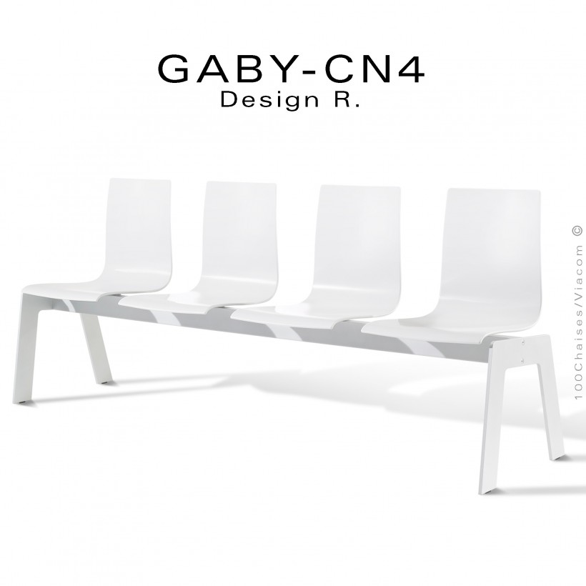 Banc ou assise sur poutre design GABY pour salle d'attente, 4 places, assise plastique couleur, piétement acier peint.