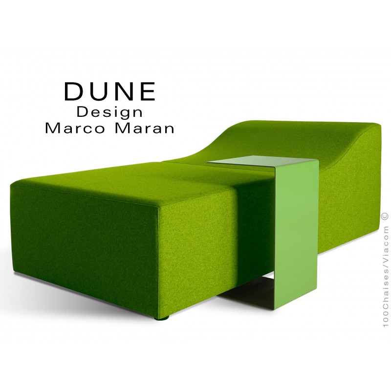Banquette modulable DUNE-2 assise 100% laine couleur vert 108, structure bois avec tablette.
