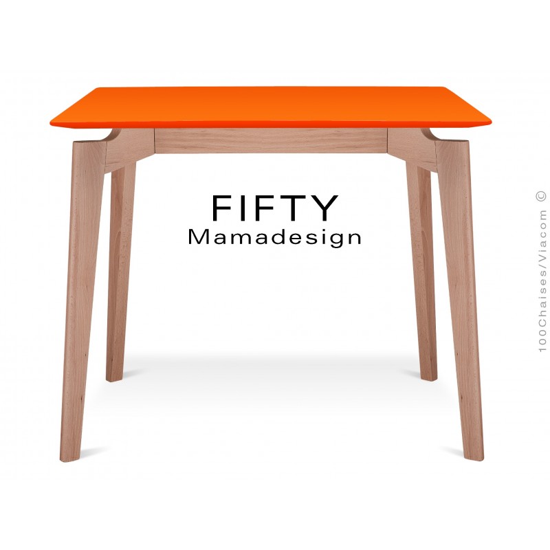 Table carrée en bois de hêtre "FIFTY" plateau MDF finition couleur orange