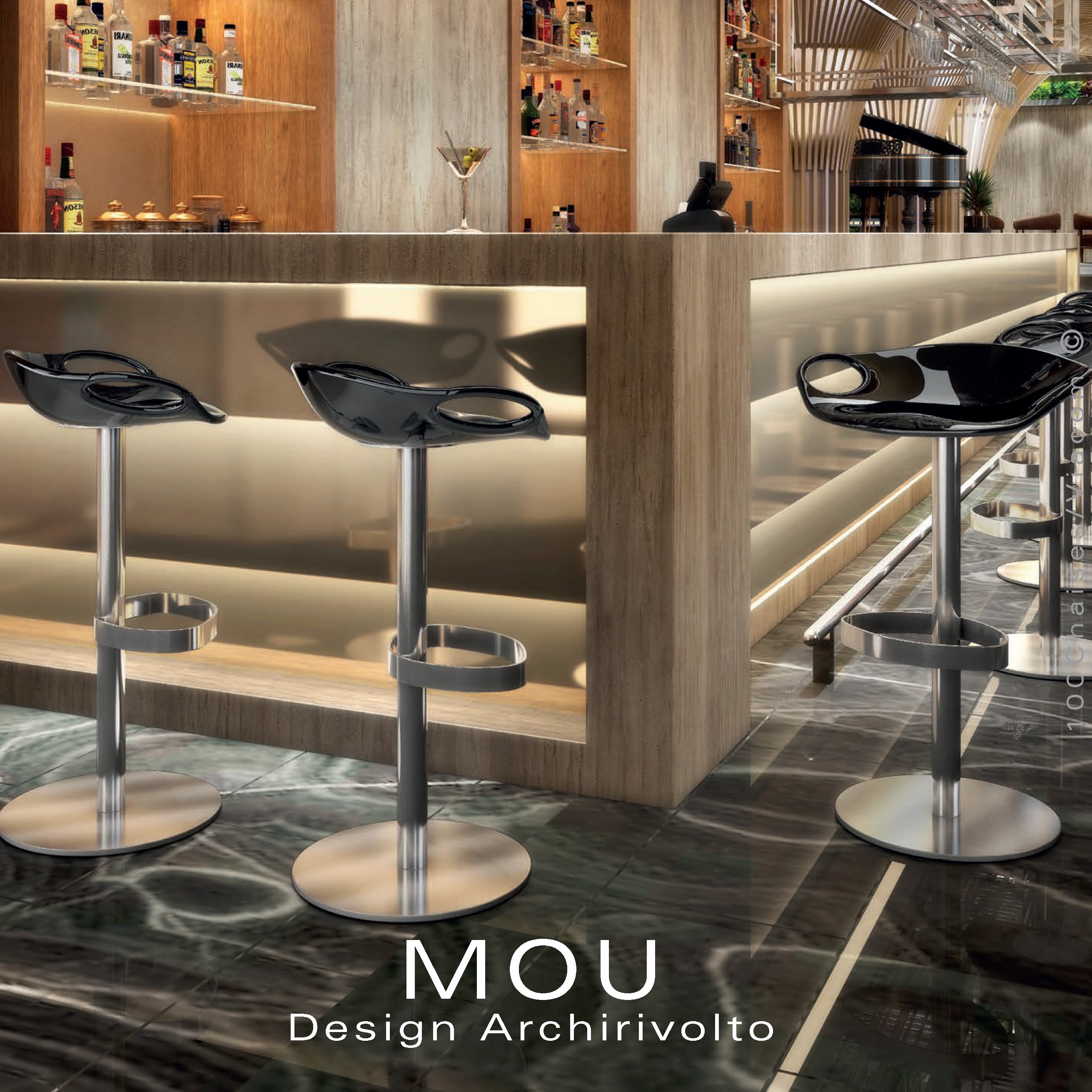 Le tabouret MOU arbore un style épuré idéal pour composer un espace branché. La silhouette originale et ergonomique du tabouret épouse parfaitement la forme du corps. Pour une esthétique parfaite, le repose-pieds rond est joliment intégré au pied en métal. Légèreté, grande résistance, stabilité et confort grâce à son assise incurvé. Ce tabouret de bar aux courbes douces trouvera sa place aussi bien dans les espaces privés que les environnements publics (restaurants, bars... CHR).