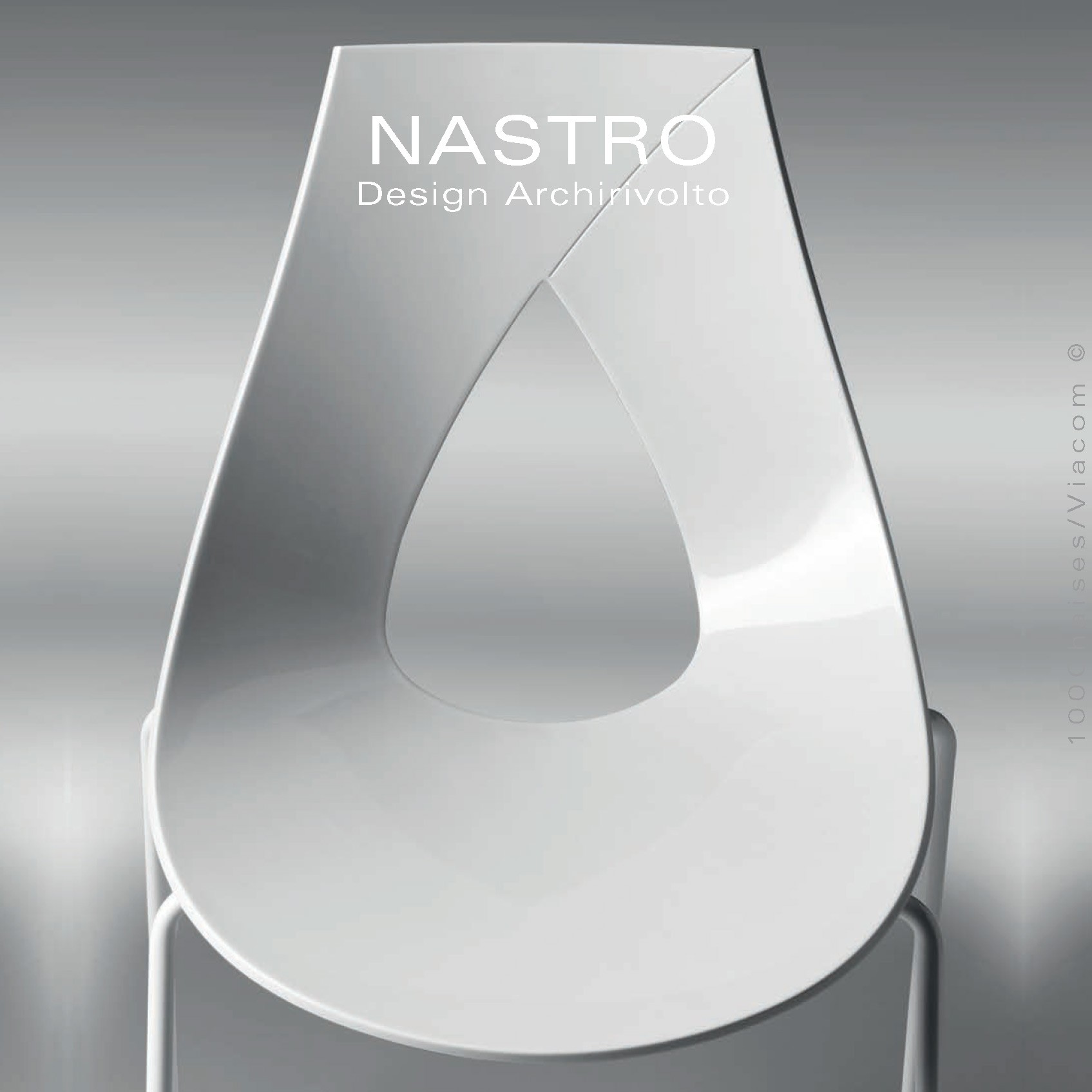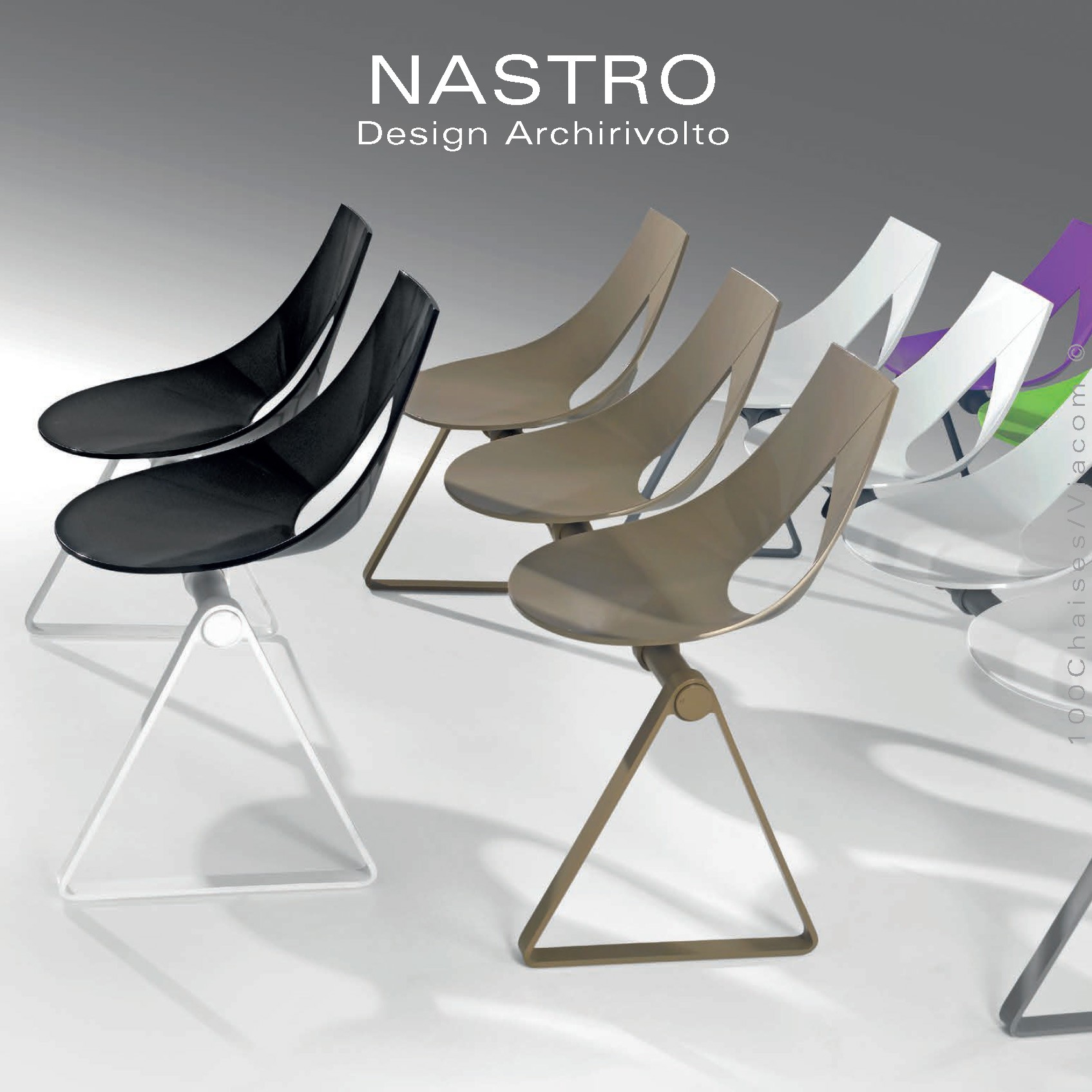 Chaise design NASTRO, assise coque plastique couleur avec coussin, piétement acier peint ou chromé brillant - Lot de 2 pièces.