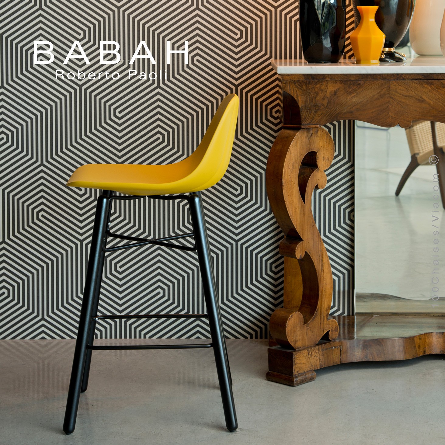 Babah est une chaise, Babah est un tabouret fortement caractérisés par une forme innovante qui présent des détails minutieux et se distingue des autres produits du marché. Le concept veut mettre en valeur une surface nervurée qui rappelle la ligne de couture présente dans les sièges rembourrés. De plus, ce qui est étonnant dans ce projet, c'est le matériau choisi : un polyuréthane injecté par moulage, et non pas seulement une mousse expansée recouverte de tissu. Cette matière plastique dure donne à la chaise plus de valeurs telles que la résistance, la propreté, et en outre elle fait attention au prix sans renoncer à la beauté et au confort. Avec sa forme, Babah est agréable et élégante dans plusieurs environnements différents par le style ou l'usage.
