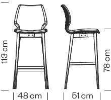 Une finition plastique alliée au raffinement d'un dessin matelassé avec un confort inégalé grâce à la découpe et à la souplesse du dossier. Son assise ultra-contemporaine joue l'originalité en se mariant avec son piètement en acier pour un rendu atypique. Une chose est sûre qu'il vous plaise ou non ce tabouret ne laissera personne indifférent.