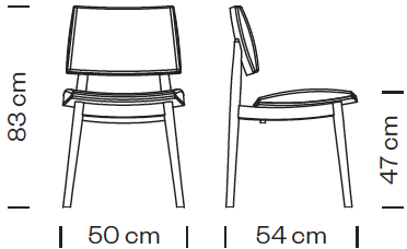 Chaise design pour salle de restaurant TO-KYO, structure, 4 pieds en bois massif de hêtre sphérique et légèrement conique, avec tampons plastiques de protection des sols. Finition piétement bois teinté au choix : Miel / Châtaigne / Gris / Brun / Noir ou version peinte RAL sur demande. Assise et dossier structure en multiplis de bois de hêtre, épaisseur 20 mm., cintré à la vapeur. Garnis de mousse polyuréthane, habillage tissu tissé gamme Medley du fabricant Gabriel, composition 100% PL., ignifugé - BS EN 1021 1&2 Cigarette and Match. Couleur tissu au choix voir palette fabricant, autre gamme, velours, cuir synthétique pour collectivités, feutre, 100% laine etc… - Vos demandes à commandes@100chaises.fr