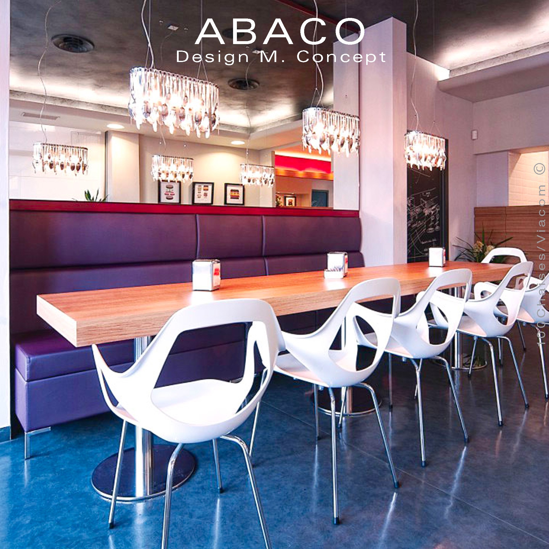 Liberté de composition… ABACO est le système de banquette modulable : la collection comporte, poufs, banquettes droites et d'angle, courbes concave et convexe ainsi que les modules de revêtements muraux, sont les éléments d'un produit au service de la conception et de la créativité. Les modules linéaires d’angle et les panneaux muraux rembourrés sont un système flexible et modulable qui, grâce aux différentes tailles disponibles, vous permettent de configurer et de décorer tout espace. La possibilité de combiner 3 couleurs de revêtement pour la base, l’assise et le dossier ainsi que celle des panneaux muraux permet de jouer sur des effets chromatiques importants qui vous permettent d'harmoniser avec l'environnement et le projet.