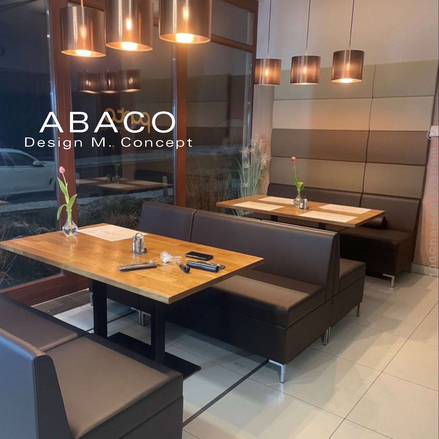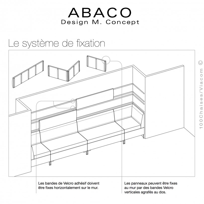 Liberté de composition… ABACO est le système de banquette modulable : la collection comporte, poufs, banquettes droites et d'angle, courbes concave et convexe ainsi que les modules de revêtements muraux, sont les éléments d'un produit au service de la conception et de la créativité. Les modules linéaires d’angle et les panneaux muraux rembourrés sont un système flexible et modulable qui, grâce aux différentes tailles disponibles, vous permettent de configurer et de décorer tout espace. La possibilité de combiner 3 couleurs de revêtement pour la base, l’assise et le dossier ainsi que celle des panneaux muraux permet de jouer sur des effets chromatiques importants qui vous permettent d'harmoniser avec l'environnement et le projet.