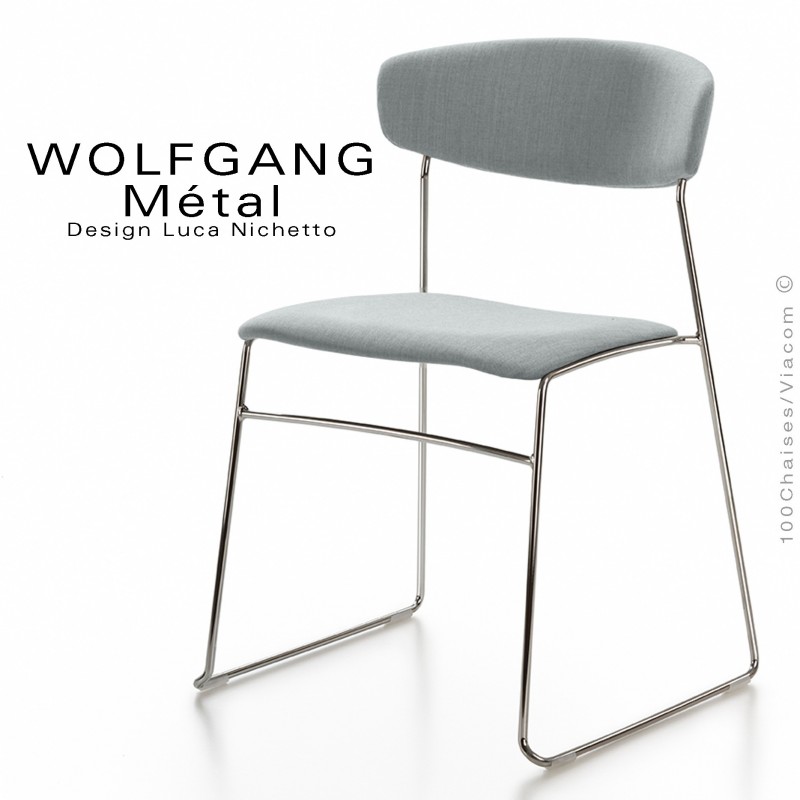 Chaise WOLFGANG Métal, piétement acier chromé, assise et dossier garnis, habillage tissu glace.