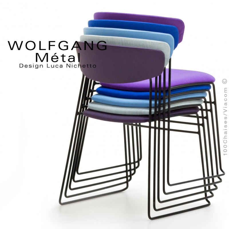 Chaise empilable WOLFGANG Métal, piétement acier, assise et dossier garnis tissu.