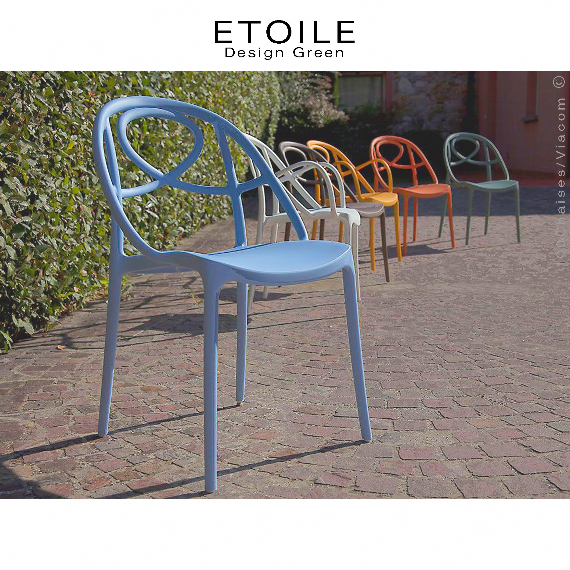Fauteuil plastique ETOILE, idéale pour les terrasses et jardins - palette couleur disponible.