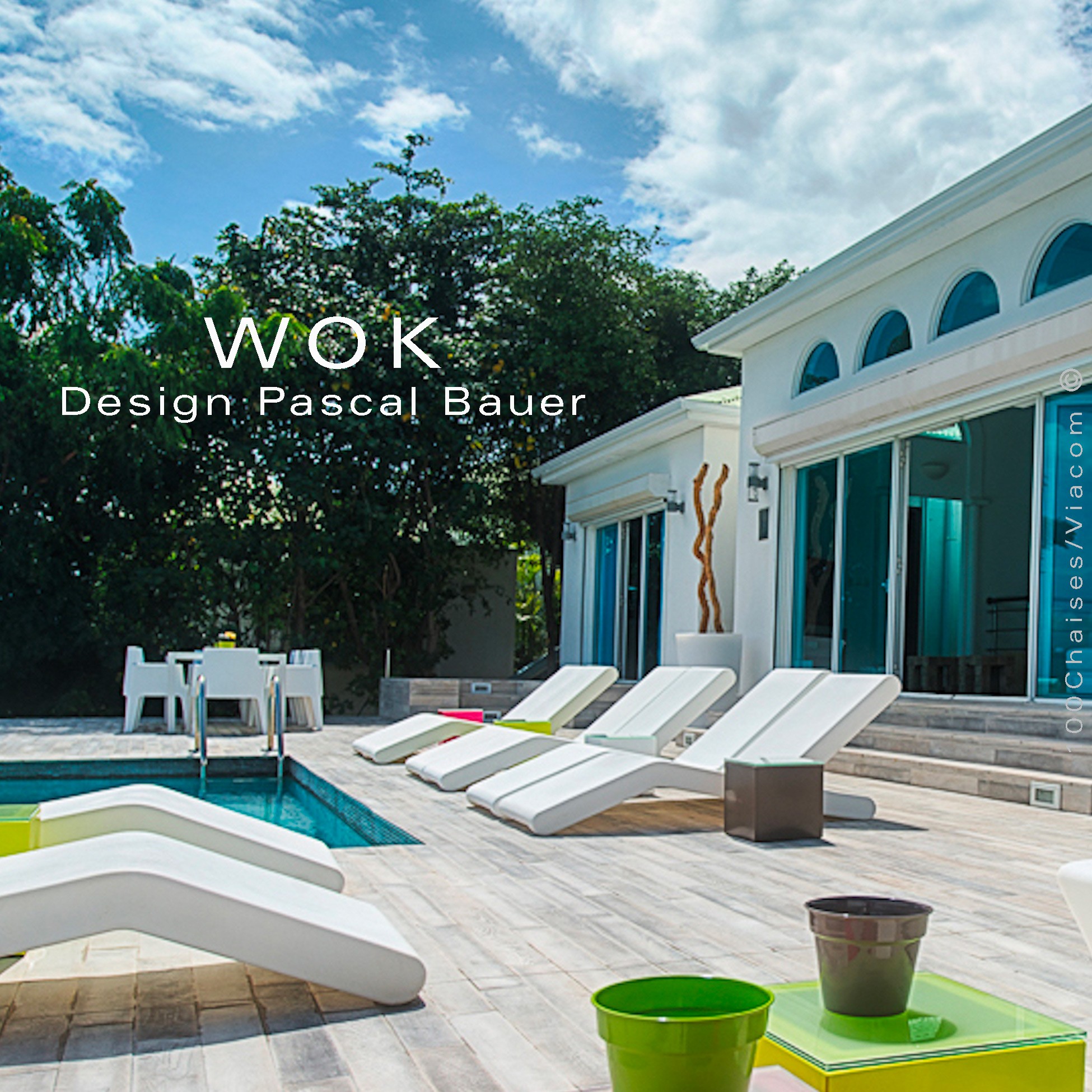 Bain de soleil ou transat design WOK, structure plastique couleur, destinations pool house, SPA & thalasso, bord de mer.