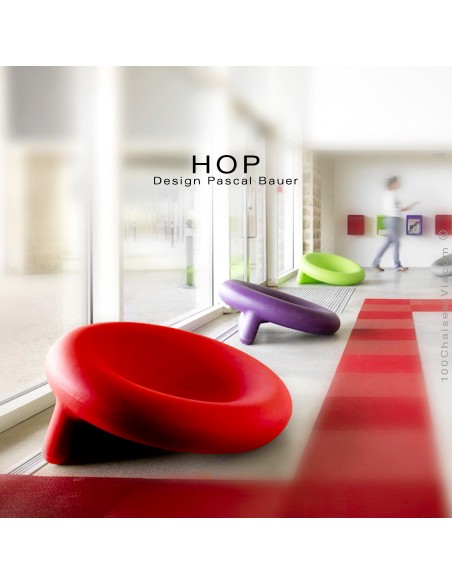Fauteuil assise basse lounge confort HOP, structure plastique couleur au choix.