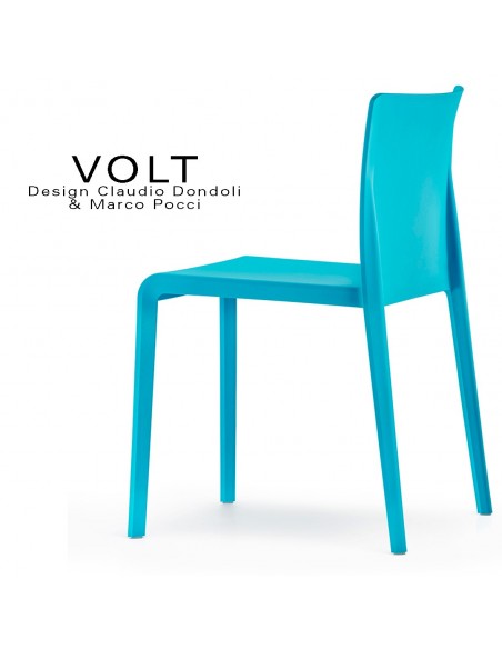 Chaise plastique pour terrasse et restaurant VOLT, structure plastique, empilable, couleur bleu.