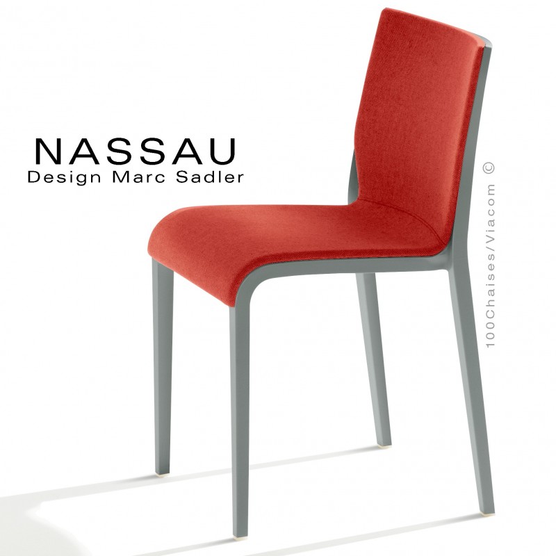Chaise NASSAU, pour hôtel, restaurant, café, snack, structure plastique gris, assise tissu brique FL825.