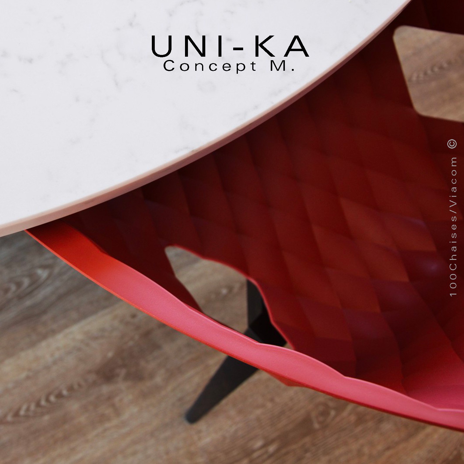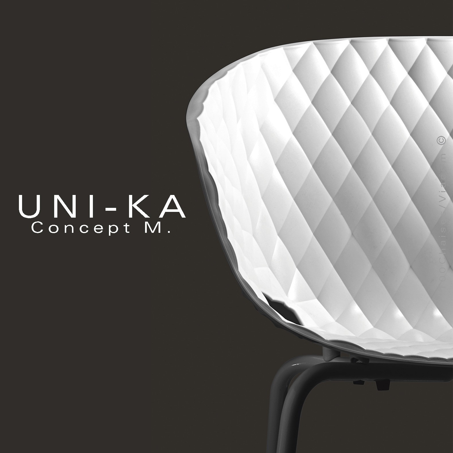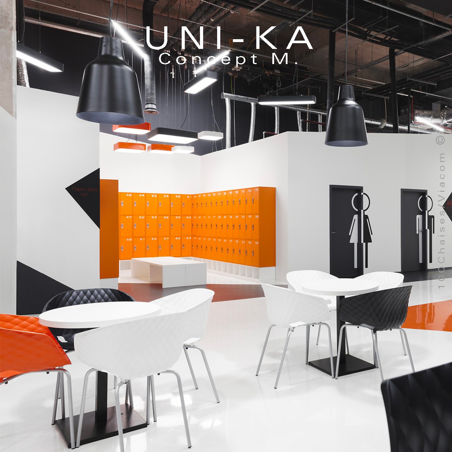 Uni-Ka ajoute une nouvelle dimension au monde des chaises coques grâce à son dessin matelassé. C'est un produit qui ne laisse pas indifférent avec sa forme arrondie et confortable ; un siège passe-partout, parce que le choix de couleurs de la coque en polypropylène et les différentes solutions du châssis en acier, la rendent idéale pour les collectivités, notamment pour les restaurants et hospitalité. Le fauteuil Uni-Ka est disponible dans de nombreuses finitions, tant au niveau des coques que des piètements, lui permettant de s'adapter à des ambiances élégantes, ou ludiques selon les coloris.