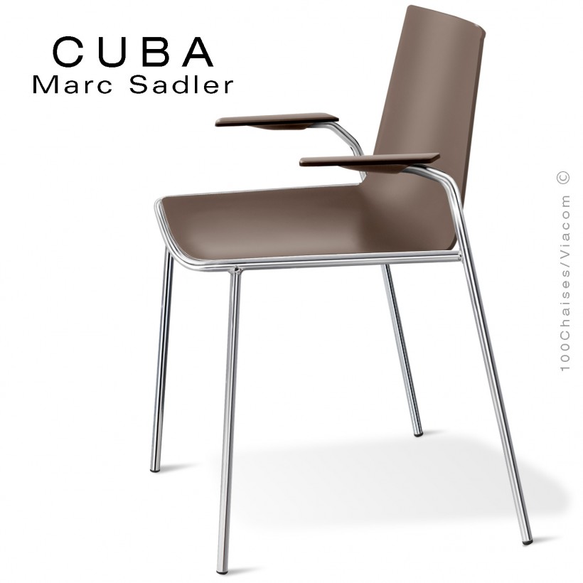 Fauteuil design CUBA, assise coque plastique couleur, structure acier peint ou chromé brillant.
