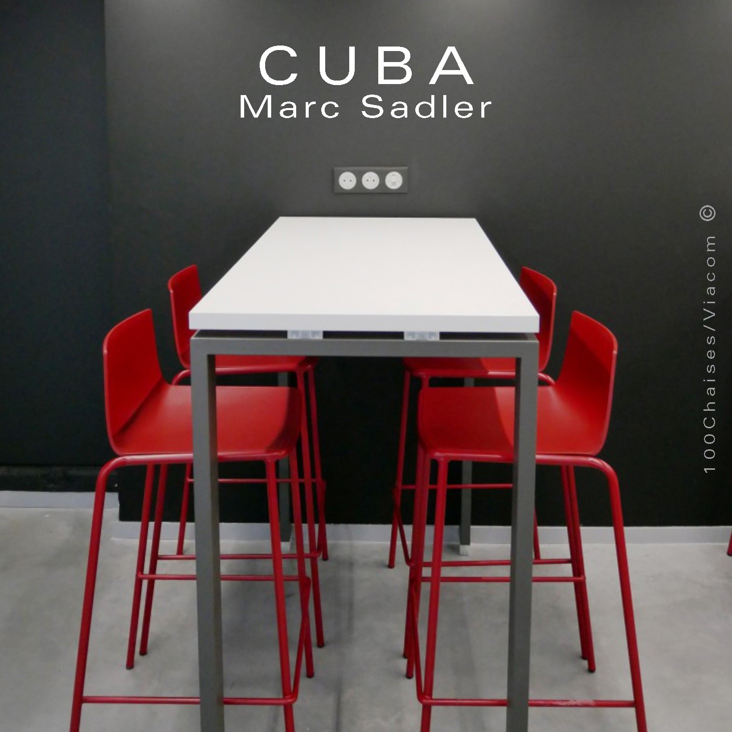 Tabouret de bar design CUBA, assise coque plastique couleur, piétement et structure acier peint ou chromé brillant.