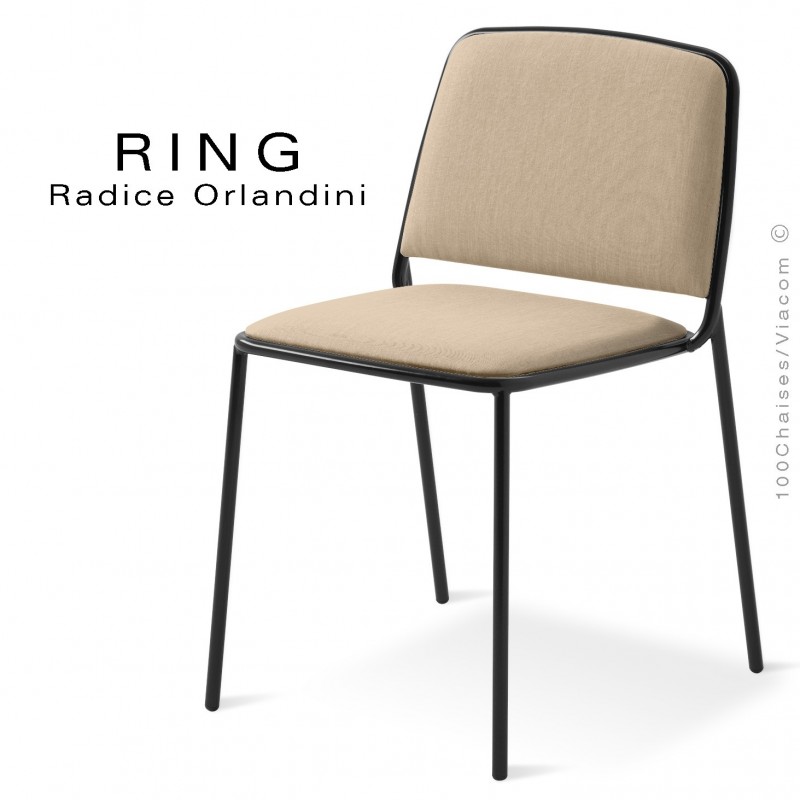 Chaise RING, assise et dossier garnis, piétement acier peint noir, habillage tissu crème