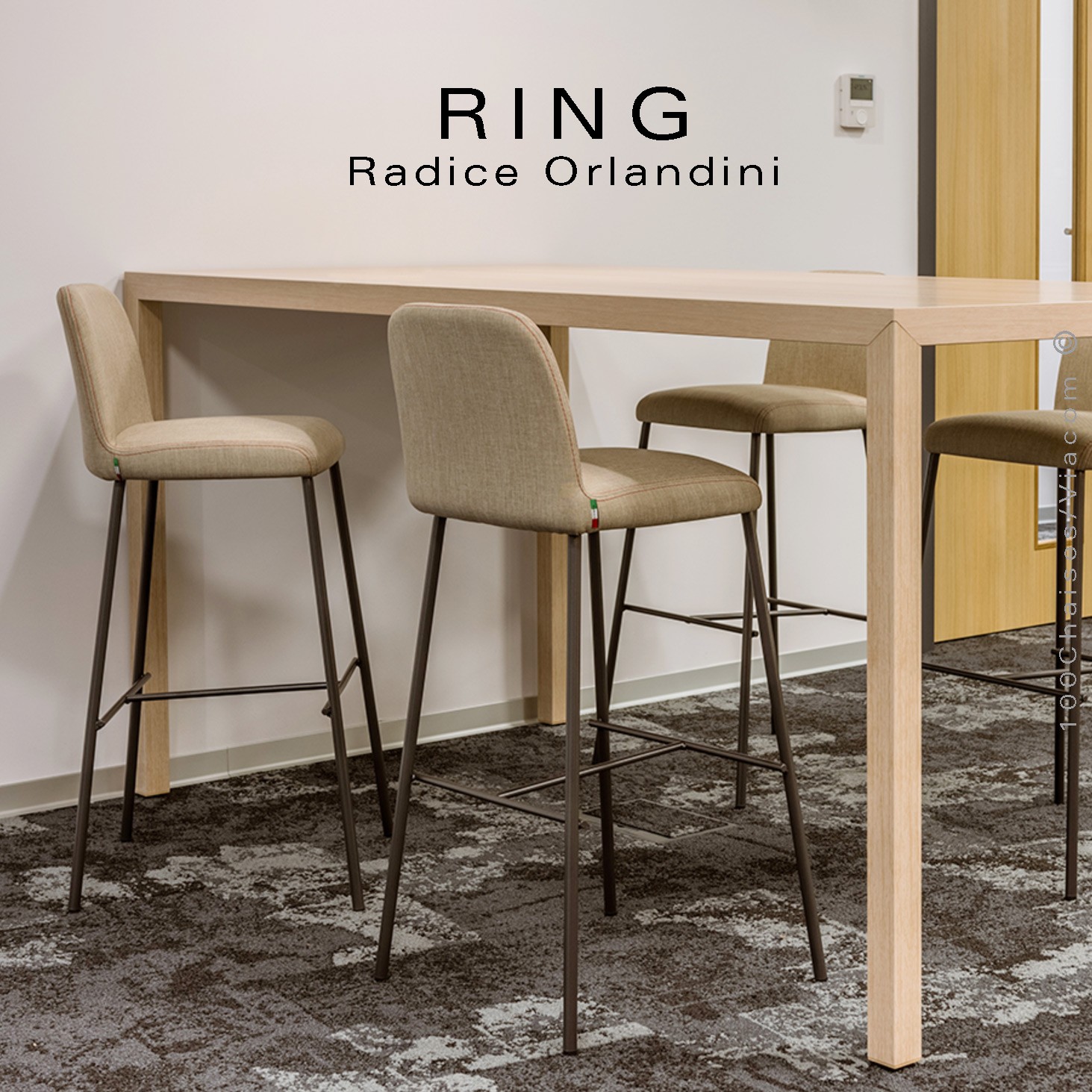 Chaise confort design RING, pour cuisine ou CHR, assise et dossier garnis de mousse, habillage tissu, piétement acier peint.