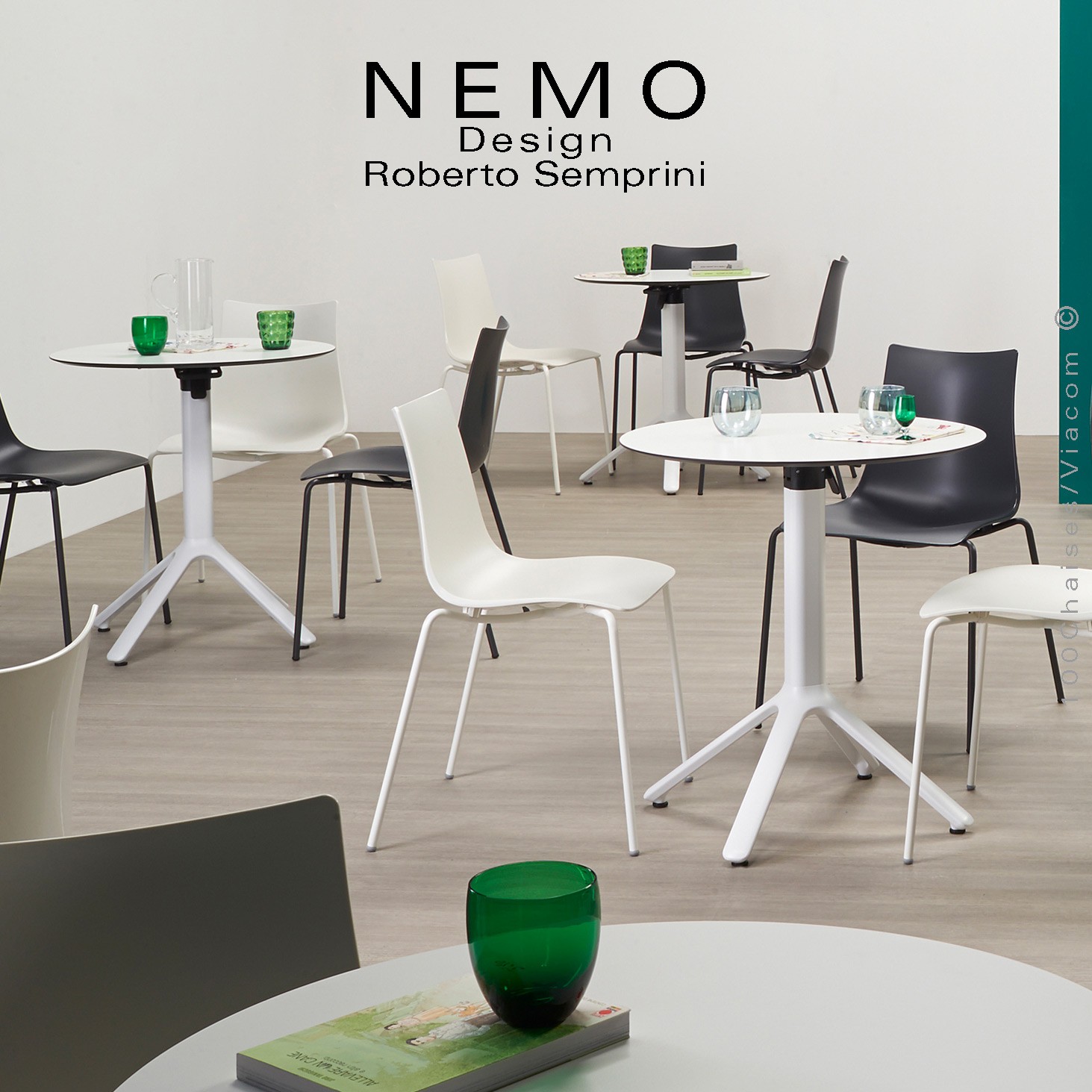 Table NEMO, pour CHR., finition peinture piétement aluminium.