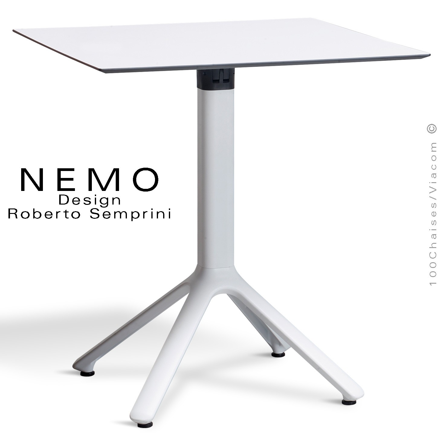 Table repas design NEMO MAXI, pour CHR. et la maison, piétement aluminium peint, plateau fixe carré compact couleur.