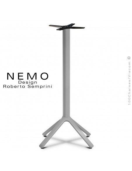 La table de bar pliante Nemo a une base avec une structure de 4 pieds ou quatre branches, une colonne carrée à coins arrondis et des fixations en aluminium moulé sous pression, disponible en couleur anthracite, blanc, gris et gris Tourterelle. La base pliante est munie d'une poignée pour faciliter l'alignement de plusieurs tables. Le plateau en stratifié compact a une épaisseur de 10 ou 12 mm., équipé de 8 bagues de fixation pour assurer la stabilité du plateau à la structure. Disponible en versions ronde et carrée, en différentes dimensions et finitions. Le chant ou bord du plateau peut-être incliné ou droit de couleur noir.