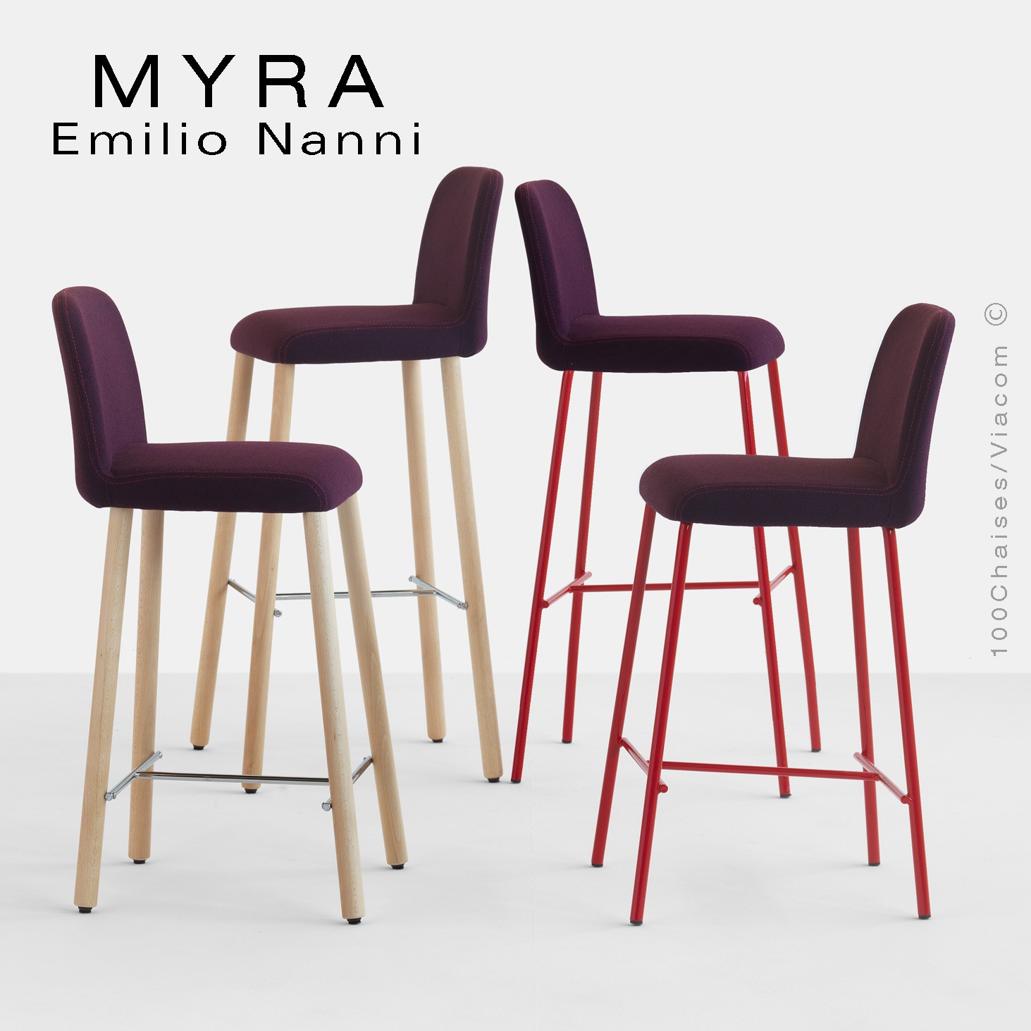 Normes européennesMini banquette ou tabouret design voir repose pieds MYRA, pour hôtel, café, restaurant CHR, mais aussi pour la maison et les collectivités. Attention deux hauteurs d'assises H.42 ou H.47 cm. Assise garnis de mousse polyuréthane, habillage tissu gamme Medley du fabricant Gabriel, composition 100% PL., ignifugé - BS EN 1021 1&2 Cigarette and Match. Couleur voir palette tissu au choix. Piétement 4 pieds en tube d'acier Ø15 mm., finition peinture (voir palette peinture - AC), ou chromé brillant sur demande, avec tampons plastiques de protection des sols. Autres tissus tissés, feutres ou aspects cuir synthétique. Vos demandes à commandes@100chaises.fr.
